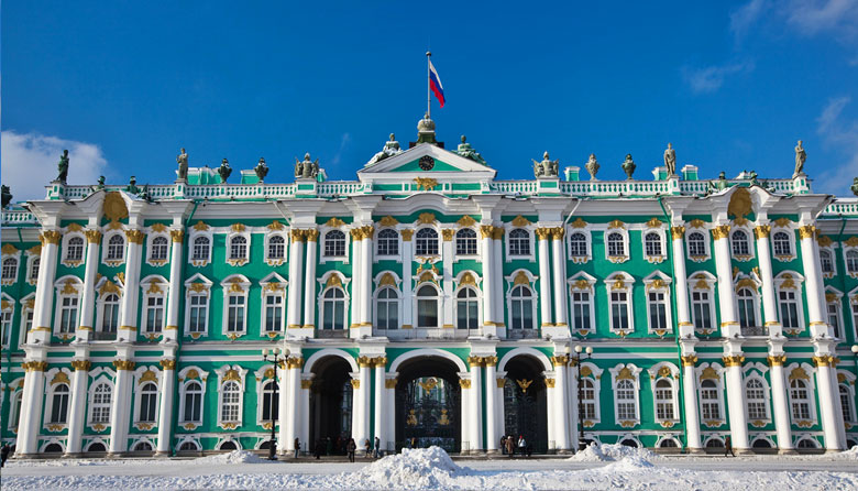 El actual palacio de invierno (1754-1762) es un magnífico ejemplo del característico barroco ruso. Construido para la zarina Isabel I, esta lujosa residencia fue la obra maestra de Bartolomeo Rastrelli, y posteriormente fue embellecido por otros arquitectos internacionales. Curiosamente cuando se terminaron las obras del palacio, este ya estaba "pasado de moda", pues el barroco había dejado paso al gusto neoclásico.