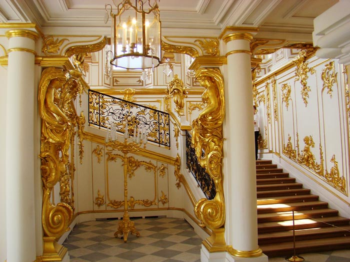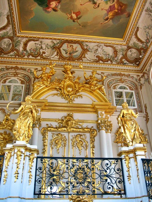 En este palacio, al igual que otros en toda Rusia, existe un desmedido despliegue de lujo y ostentación, que hacen de el un conjunto en exceso recargado en el que se echa en falta la elegancia y exquisitez de otros palacios europeos mas cercanos a nosotros.